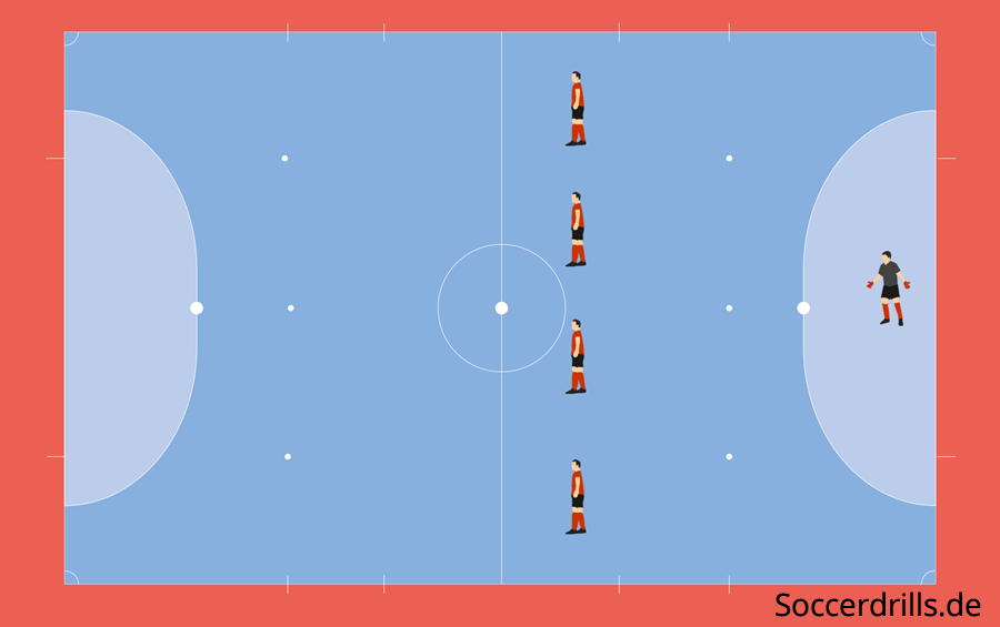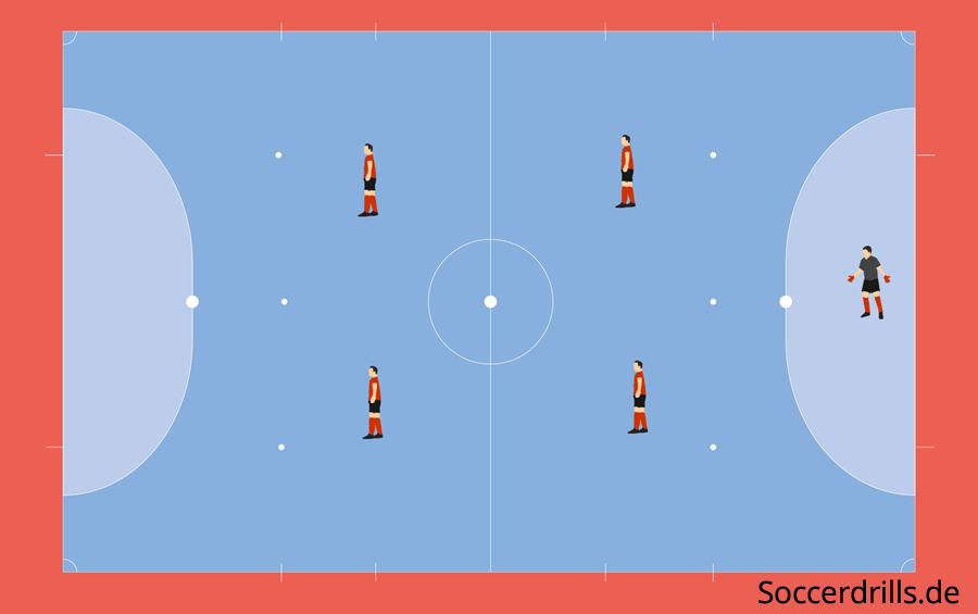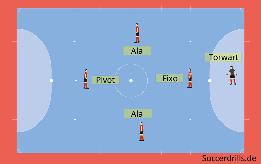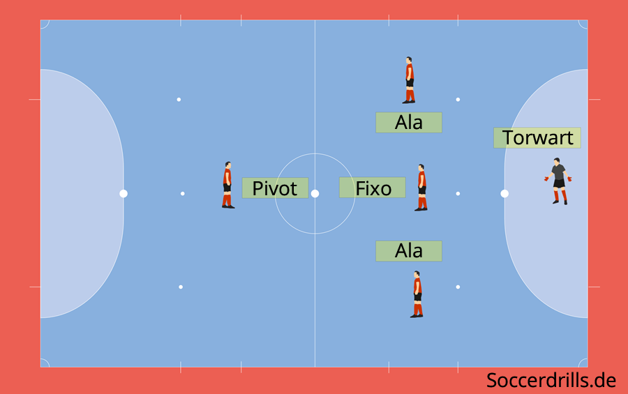 Dieses Spielsystem ist das einfachste System und eignet sich für den Futsal-Taktik-Einstieg. Es ist für die Spieler leicht zu erfassen und wird häufig eingesetzt.