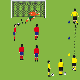 Koordinationsübungen im Endlos-Kreis, verbunden mit Passspiel, Ballannahme und Tricks.
