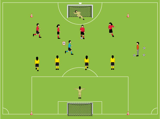 - Abgesichertes angreifen und nach einem Ballverlust schnelles Umschalten auf Defensive