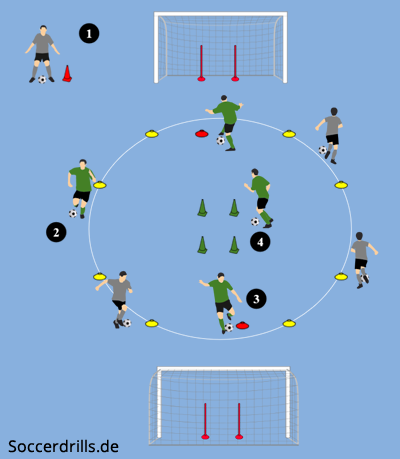 Obwohl die benötigte Zeit bei einigen Übungen nicht sehr hoch ist, solltest du nicht unbedingt sämtliche Übungen in einem Training anbieten. Suche dir die Übungen raus, die dir am besten gefallen und deiner Intension entsprechen. Es sollte immer genug Zeit fürs Abschlussspiel verbleiben und kein Zeitdruck entstehen.
