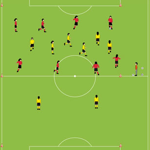 Trainingseinheit: Variabler Spielaufbau, sicherer Ballbesitz, präzises Passspiel, gute Chancenverwertung und schnelles Umschalten