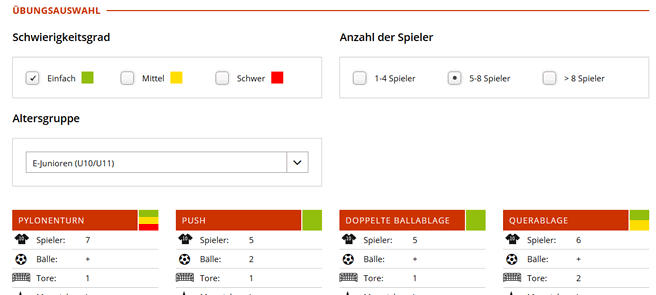 Dieses Problem wurde beseitigt: Man klickt sich durch die umfangreichen Übungsangebote auf Soccerdrills und findet die Übungen nicht wieder, die genau gepasst hätten.