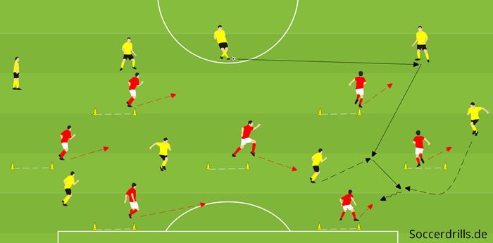 - Die Hütchentore dürfen nicht nur besetzt werden, die Verteidiger verschieben zum Ball.