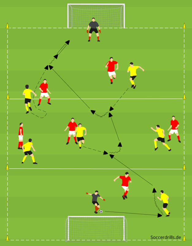 Hilfreich für ein erfolgreiches 1 gegen 1 ist die Automation bestimmter Bewegungsabläufe. Beherrscht ein Spieler Tricks, bestimmte Bewegungsabläufe wie Körpertäuschungen, fühlt er sich sicher und wird diese in der Praxis gerne einsetzen. Bevor du in eine Spielform zum 1 gegen 1 einsteigst, sollten deine Spieler im 1 gegen 1 die Grundsätze kennen und das Coaching bereits erfolgt sein. Hierzu werden folgende Artikel empfohlen: