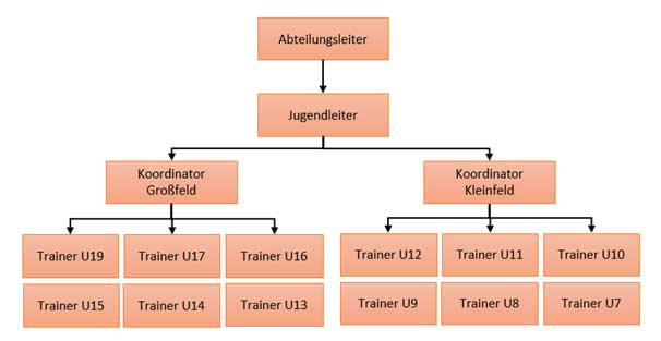 Die aktuelle Struktur ist in der Regel so aufgebaut, das alle Übungsleiter dem Jugendleiter unterstehen. Dieser hat dann für jede Mannschaft organisatorische Aufgaben zu übernehmen und muss als Berufstätiger mangels Zeit oft das sportliche vernachlässigen. Ist nicht zufällig ein ehemaliger oder aktueller Trainer als Jugendleiter tätig kann es zusätzliche Probleme bei der sportlichen Auffassung und Umsetzung geben.