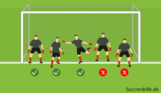 Der Torwart muss sich bei der Ausführung des Strafstoßes mindestens mit einem Teil eines Fußes auf oder über der Linie befinden. Er darf nicht vor oder hinter der Linie stehen. Verlässt der Torwart zu früh die Linie mit beiden Füßen, wird der Strafstoß wiederholt und es gibt eine gelbe Karte, hierzu wird auch der Videobeweis genutzt.