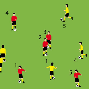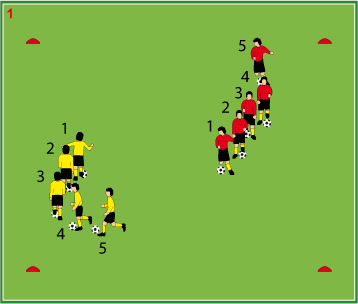 Wir kommen wieder zurück zum klassischen Schattendribbling. Es wird also wieder ganz "normal" mit Vordermann und Hintermann gedribbelt.