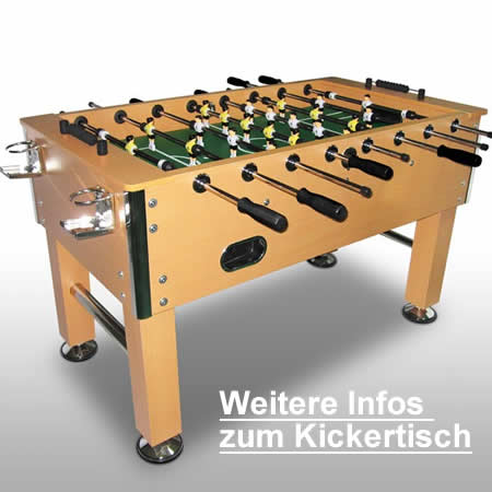 Ich entschied mich für diesen Kickertisch von jago24, die Holzfarben passen zur Einrichtung des Büros. Es gibt noch weitere Varianten und andere Preislagen.
