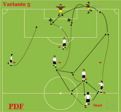 Jede Variante beginnt mit einem Dreiecksspiel an den Markierungen an der Mittellinie. Wann die Angriffsaktion in die Tiefe startet, entscheiden die drei dort postierten Spieler, in dem sie aus dem Dreieck den Angriff einleiten.