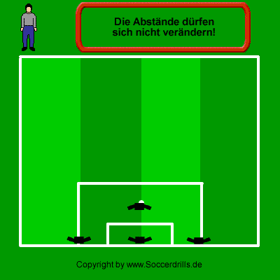 Drei Spieler bewegen sich auf einer Linie. Ein vierter Spieler bewegt sich vor dieser Reihe. Der Abstand zwischen den Spielern darf sich nicht verändern.