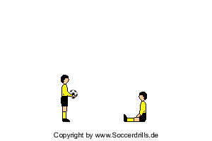 Wir benötigen nur noch einen Ball pro Spielerpaar. Ein Spieler steht mit Ball, der andere sitzt auf dem Boden in einigen Metern Entfernung. Sie werfen sich den Ball immer wieder zu.
