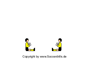 In dieser Übung sitzen beide Spieler auf dem Boden und jeder hält einen Ball in den Händen. Sie werfen sich die Bälle gleichzeitig zu. Es soll kein Bogenwurf erfolgen.