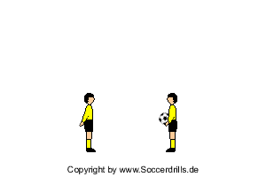 Es geht noch schwerer! Die Spieler stehen sich frontal gegenüber. Der Ball wird von unten mit den Händen im Bogen über den Partner geworfen. Dieser bringt sich in Position und fängt den Ball mit beiden Händen auf dem Rücken. Aus dieser Haltung wirft er den Ball über den Kopf zurück.