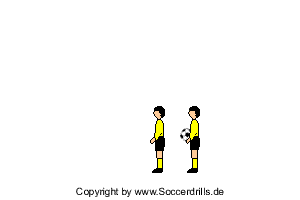 Die Spieler stehen hintereinander. Der Spieler auf der hinteren Position wirft den Ball über seinen Vordermann. Sobald der Ball im Blickfeld des vorderen Spielers erscheint, startet dieser und fängt den Ball. Einfacher ist diese Übung, wenn der werfende Spieler bei Abwurf ein kurzes Kommando gibt. Viel Gefühl ist beim Wurf erforderlich. Schaue Dir die Animation genau an.