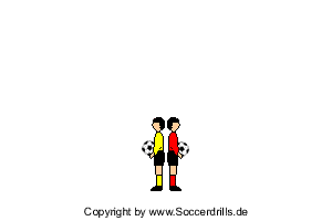 Wir machen weiter mit der nächsten schweren Partnerübung im Fußballtraining und es wird nicht einfacher. Die Spieler stehen dicht zusammen, Rücken an Rücken. Beide werfen ihre Bälle in einem Bogen vom Körper weg, drehen sich und starten in Richtung des Balles vom Partner. Dann soll der Ball nur noch gefangen werden. Je höher der Ball geworfen wird, desto leichter die Übung!