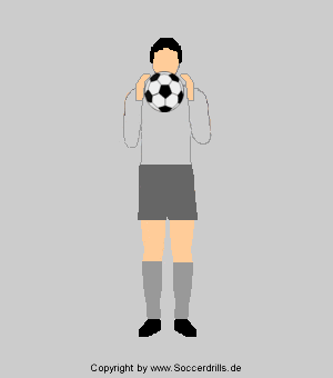 Wir halten den Ball auf Kopfhöhe mit beiden Händen. Der Ball wird losgelassen und fällt genau auf den Fuß. Danach Ball prallt leicht schräg nach oben und wird dann mit dem anderen Fuß gespielt. Anschließend spielen wir den Ball senkrecht in die Hände auf Kopfhöhe zurück. Der Körper bleibt ruhig und wird kaum bewegt!