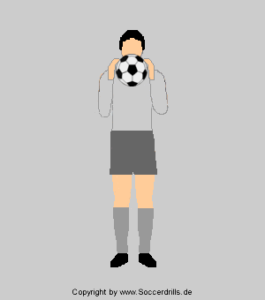 Wir halten den Ball auf Kopfhöhe mit beiden Händen. Der Ball wird losgelassen und fällt genau auf den vorderen Teil (kurz vor dem Knie) des Oberschenkels. Der Ball prallt vom Oberschenkel senkrecht auf die Schulter. Von der Schulter fällt der Ball wieder in die Hände auf Kopfhöhe zurück. Der Körper bleibt ruhig und wird kaum bewegt!