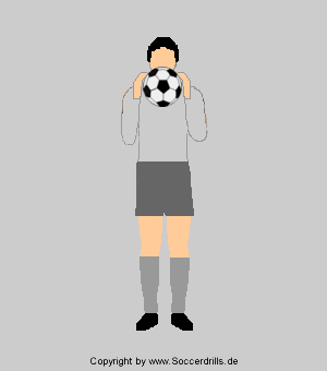 Wir halten den Ball auf Kopfhöhe mit beiden Händen. Der Ball wird losgelassen und fällt genau auf den vorderen Teil (kurz vor dem Knie) des Oberschenkels. Der Ball prallt vom Oberschenkel senkrecht wieder auf Kopfhöhe in die Hände. Der Körper bleibt ruhig und wird kaum bewegt!