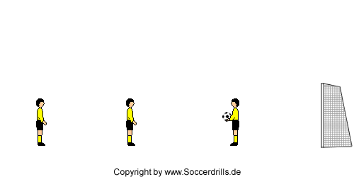 - Der letzte Spieler dreht sich zum Tor und versucht den zurückspringenden Ball nochmal gegen die Latte zu köpfen. Bei Erfolg gibt es einen Zusatzpunkt.
