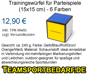 Material: 1 Ball, 6 Bodenmarkierungen, 4 Stangen o.ä.