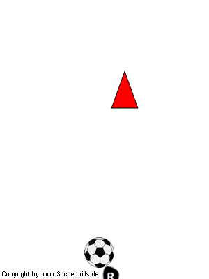 Ziehe den Ball mit der Sohle - direkt vor dem Hütchen (Gegenspieler) - mit dem rechten Fuß nach rechts und anschließend mit dem rechten Innenrist wieder nach links.