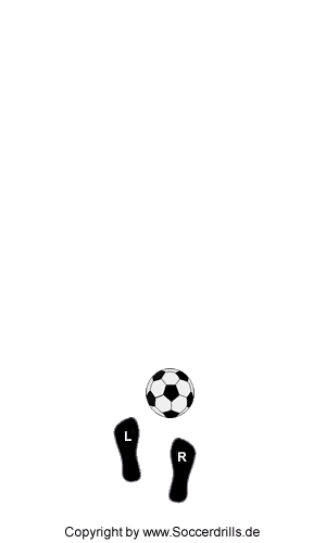 Das rechte Bein wird vor den rollenden Ball gebracht, um diesen mit einem Rückwärtskick auf den linken Fuß abzulegen. Nun wir der Ball nur noch an der Aussenseite des rechten Beines vorbeigespielt. Hört sich doch alles recht einfach an, oder nicht?