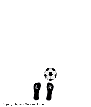 Mit dem rechten Bein über den Ball steigen, dann den Ball mit dem rechten Außenrist seitlich spielen um ins sichere Dribbling zu gelangen. Und nochmal: Versuche aus der Finte heraus Tempo zu machen.
