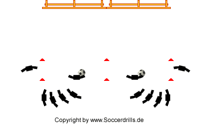 Material: 1 Ball pro Team, 2 Langbänke, 8 Startmarkierungen.