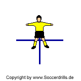 Ja, auch das geht. Eine ganze Drehung in der Luft und sicher landen. Zur Einführung kannst Du das Kreuz weglassen, damit die Spieler sich auf den Sprung konzentrieren. Das hohe Abspringen erleichtert die ganze Körperdrehung.