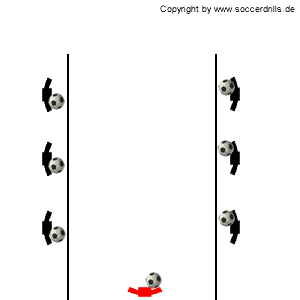 Material: Jeder Spieler hat einen Ball, markierter Korridor.