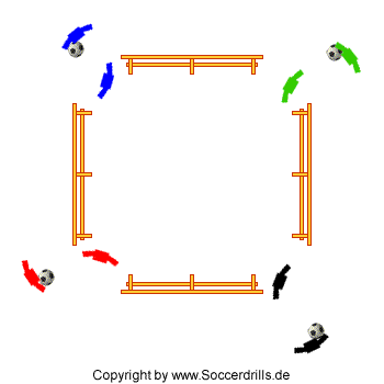 - Dribbling ums Quadrat im Uhrzeigersinn.