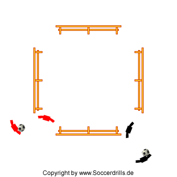 - Dribbling ums Quadrat im Uhrzeigersinn.