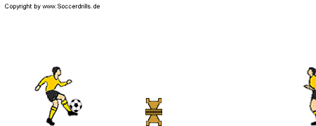 In zwei Reihen passen sich die Spieler den Ball über zwei gestapelte Bänke zu (besser Fussballtennisanlage falls vorhanden). Wer den Ball gespielt hat, weicht zur Seite aus und läuft ans Ende der Reihe. Der Ball darf auf jeder Seite nur einmal den Boden berühren. Das Spielfeld auf jeder Seite eingrenzen, entweder durch Linien oder durch Markierungen.