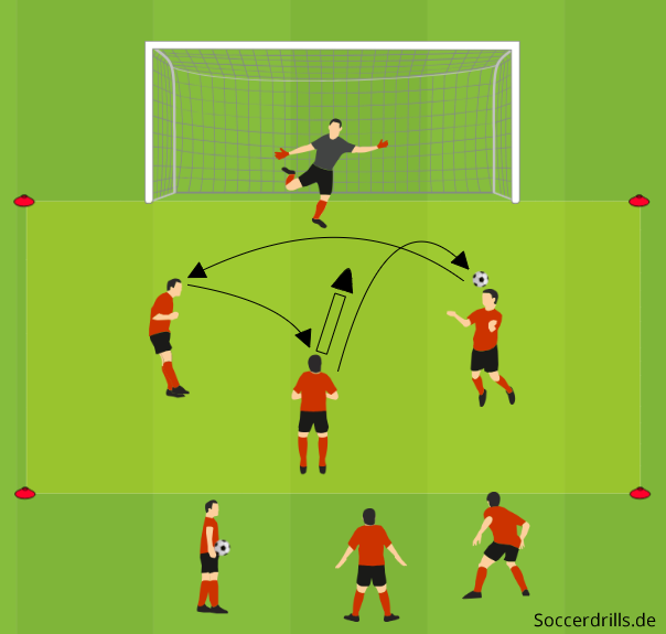 - Dieser köpft zum nächsten Spieler und dieser wieder zum Werfer, der aufs Tor köpft.