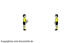 Ball zuwerfen, dann genauer Kopfball zurück in die Arme. Der Zuwerfer bewegt sich von rechts nach links und umgekehrt.