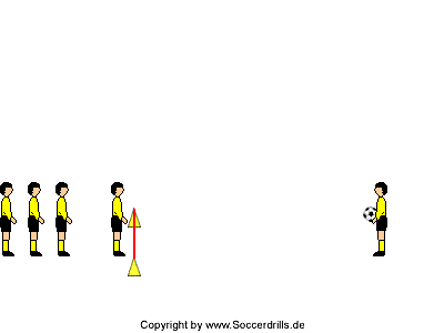 Der Ball wird einem Mitspieler zum Kopfball zugeworfen. Der köpfende Spieler führt vor dem Kopfball eine kleine Flugrolle über eine flache Hürde aus. Nach der Rolle soll sich der Übende schnell orientieren und den Ball genau in die Arme des Zuwerfes köpfen.