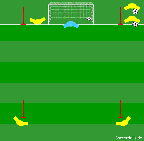 Material: Ein Tor, 4 Stangen und ausreichend Bälle.