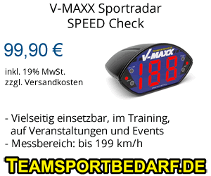 - Damit genug Tiefe ins Spiel kommt, sollten die Markierungen nicht zu dicht beieinander liegen. Der Abstand der Markierungen für den Startspieler und dem Abwehrspieler können bis zu 20 Meter betragen, die seitlichen Markierungen werden bis zu 15 Meter vom Zentrum entfernt ausgelegt. Achte darauf, dass die Entfernung zum Tor lang genug für einen Torschuss ist.