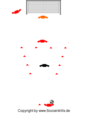 Keine Ahnung, in welcher Rubrik diese Übung wirklich hineingehört. Es ist eine Kombination aus Torschuss, Passen und Taktik.