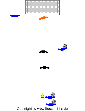 Material: Mindestens 2 Bälle, eventuell Startmarkierung, 1 Tor.