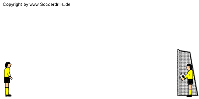 Keine Kopfbälle bei Kopfballanfängern! Der Trainer oder Betreuer steht neben dem Tor und wirft den Ball wahllos zu. Der Übende erzielt, egal wie, das Tor.