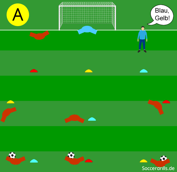 - Welches Team erzielt die meisten Tore? Der Ablauf der aufgerufenen Farben muss dabei eingehalten werden, der Trainer fungiert als Schiedsrichter.