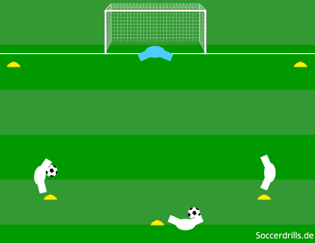 - Die Übung beginnt, wenn der Torhüter seinen Platz eingenommen hat.