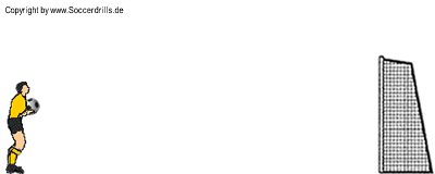 Der Spieler läuft mit dem Ball in der Hand an und schießt dann aus dem Lauf volley aufs Tor.