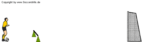Material: Ausreichend Bälle, 1 Tor, 2 Hütchen und 1 Stange.