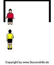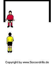 Der Trainer steht dem Torwart mit Ball frontal gegenüber. Wähle zunächst einen kurzen Abstand, den Du langsam vergrößern kannst. Führe die Übungen auch auf der anderen Torseite durch.
