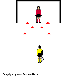 Material: Mindestens 2 Bälle, 6 Bodenmarkierungen zur Orientierung, 1 Tor.