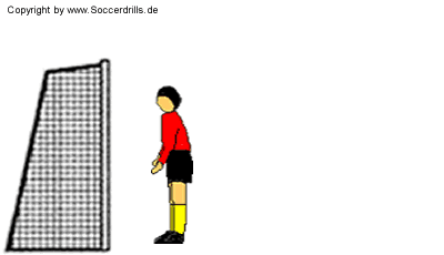 Der Torwart steht mit dem Gesicht zum Tor. Auf Zuruf des Trainers erfolgt eine schnelle Drehung und anschließend die Ballsicherung. Der zeitliche Abstand zwischen Zuruf und Schuß aufs Tor sollte dem Leistungsstand des Torhüters angepasst sein. Intensität und Schärfe der Torschüsse in der Übung langsam erhöhen.