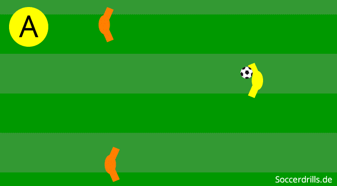 - Der Kapitän stoppt den Ball vor dem Pass. Die anderen beiden Spieler tauschen blitzschnell die Positionen.