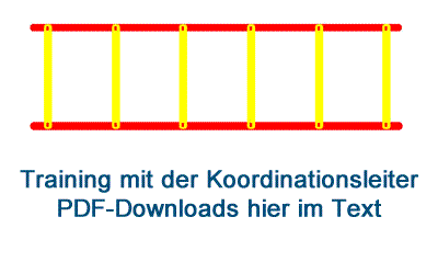 Weiterhin wird empfohlen den Artikel von Simone Schubert „Wie viel Koordination steckt in der Leiter?“ zu lesen, damit die Koordinationsleiter auch fußballerisch erfolgreich eingesetzt wird. Beachte bitte auch die Hinweise zu „Variationen“ und die „Tipps“ weiter unten, dann klappt es auch mit der Koordinationsleiter.